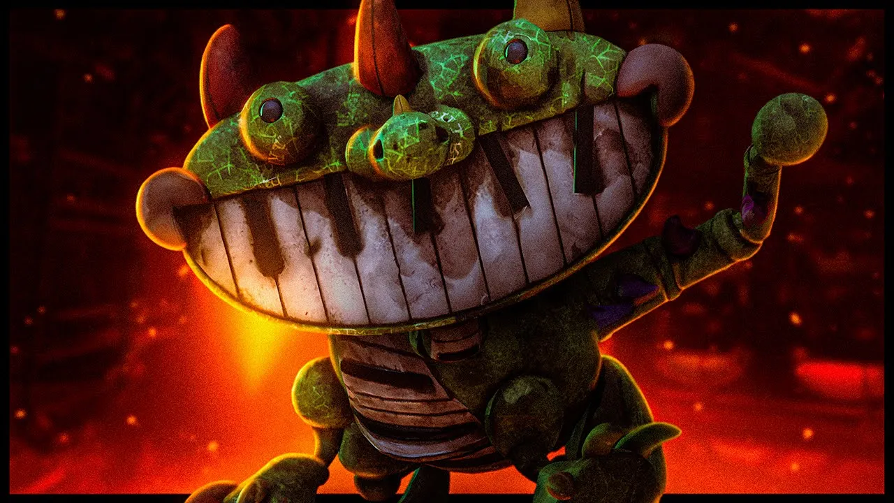 mostrar para vocês antes de falar sobre o pianossauros oficial de Pop Playtime bora dar uma olhada esse aqui é um vídeo bem curtinho de um usuário chamado Ben L7 tá na descrição também mas que eu acho que pegou a essência do que deveria ser o pianossaurus olha só vamos dar uma olhada depois a gente comenta ó ah cuidado esse vídeo tem jump scares e flashlights e som alto tá então abaixa o volume aí vamos lá então aqui olha que bem feito essa animação cara muito bem feito tá é como uma cutine isso aqui na verdade