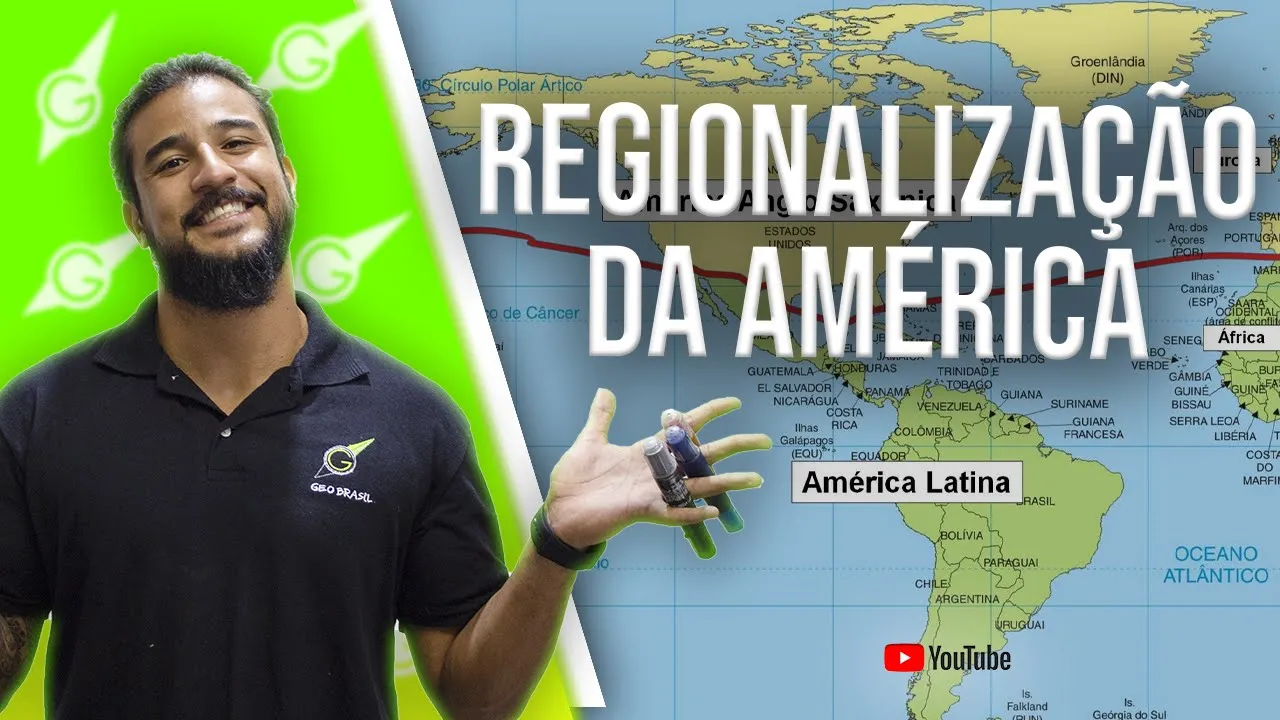 criado com muito carinho focado no enem está na descrição você precisa conhecer também tá bom assunto de hoje você já sabe é regionalização do continente americano eu chego ah tá o quadro é todo seu salva aquele print maravilhoso que a aula vai começar produção por favor solta ele nenhuma foto que mandei um diferente aqui é isso de índio mas presta atenção gente o assunto de hoje regionalização do continente americano para ficar lindo de bonito primeiro a gente tem que entender o que que é regionalizar anota aí você vai beleza eu quero título vermelho e a