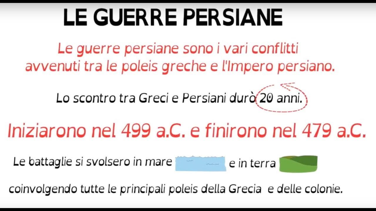 le guerre persiane l'impero persiano tra il sesto e il V secolo avanti Cristo inglobava tutte le terre comprese tra i fiumi Indo a Est e Danubio a ovest il sovrano assoluto Dario i detto il gran Re aveva la sua corte a Persepoli da qui egli regnava su sudditi di Lingue e costumi diversi verso la fine del vio secolo Le Mire espansionistiche dei Persiani li spinsero ad avanzare verso il Mediterraneo entrando in contatto con le colonie greche dell'Asia Minore e delle coste dell'Anatolia Dario impose tributi alle colonie greche che erano importanti e ricchi centri commerciali i
