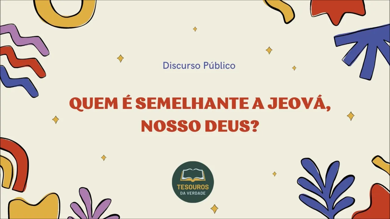 é Resumindo em uma única palavra que é o seu nome pessoal Jeová ele faz com que venha a ser esse nome contém tudo aquilo que ele é tudo aquilo que ele representa toda a sua grande oleosidade do nome de Jeová Então esse discurso vai nos ajudar justamente nisso Aumentar o nosso preço por nosso querido Deus a o nosso amor por ele vai nos ajudar a analisar melhor algumas qualidades de Jeová e como que nós podemos imitar essas qualidades mesmo sendo humanos imperfeitos esse assunto irmãos é muito importante porque Satanás hoje está fazendo de tudo absolutamente