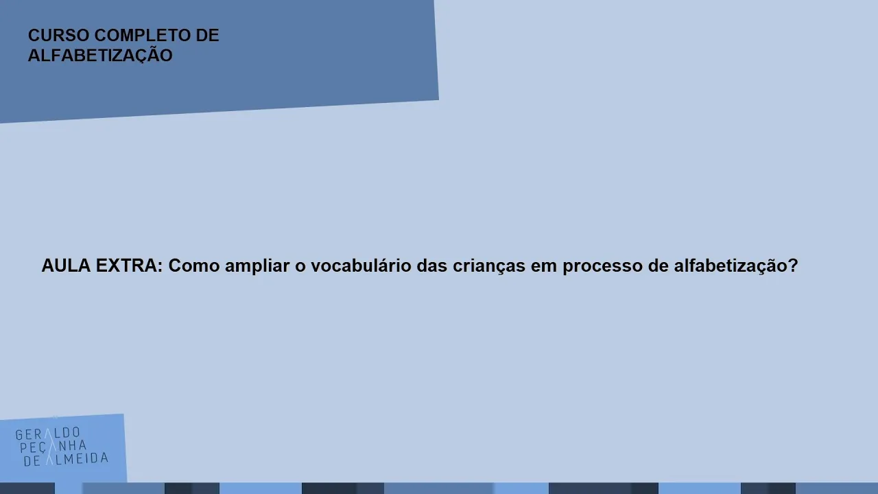 o Olá eu sou o psicanalista educador e escritor Geraldo Peçanha de Almeida nossa conversa de hoje é como ampliar o vocabulário de uma criança no processo de desenvolvimento da escrita algo juntos e [Música] a ampliar ou desenvolvimento da escrita é sempre um desafio para a escola às vezes a criança tem bom traçado da letra Às vezes a criança tem uma boa condição de percepção do que se pede mas ela não consegue é desenvolver alongar a escrita às vezes eu fico observando alguns processos educativos e percebo uma falha bem pontual na ampliação do vocabulário da criança
