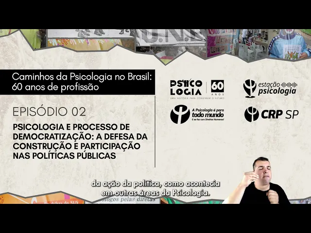 da saúde ela acaba ganhando um espaço e também de protagonismo e ela ajuda né nos movimentos de saúde e discussão da Saúde Mental de antimanicomial etc e aí com a população inclusive do SUS [Música] Liberdade o exercício da liberdade de exercício da participação é ante o caráter terapêutico Então acho que é importante a gente vê nesse processo de luta pela democracia se organiza a Luta pelos direitos sociais [Música] caminhos da Psicologia no Brasil 60 anos de profissão é um podcast da comissão de história e memória do Conselho Regional de Psicologia de São Paulo este Episódio