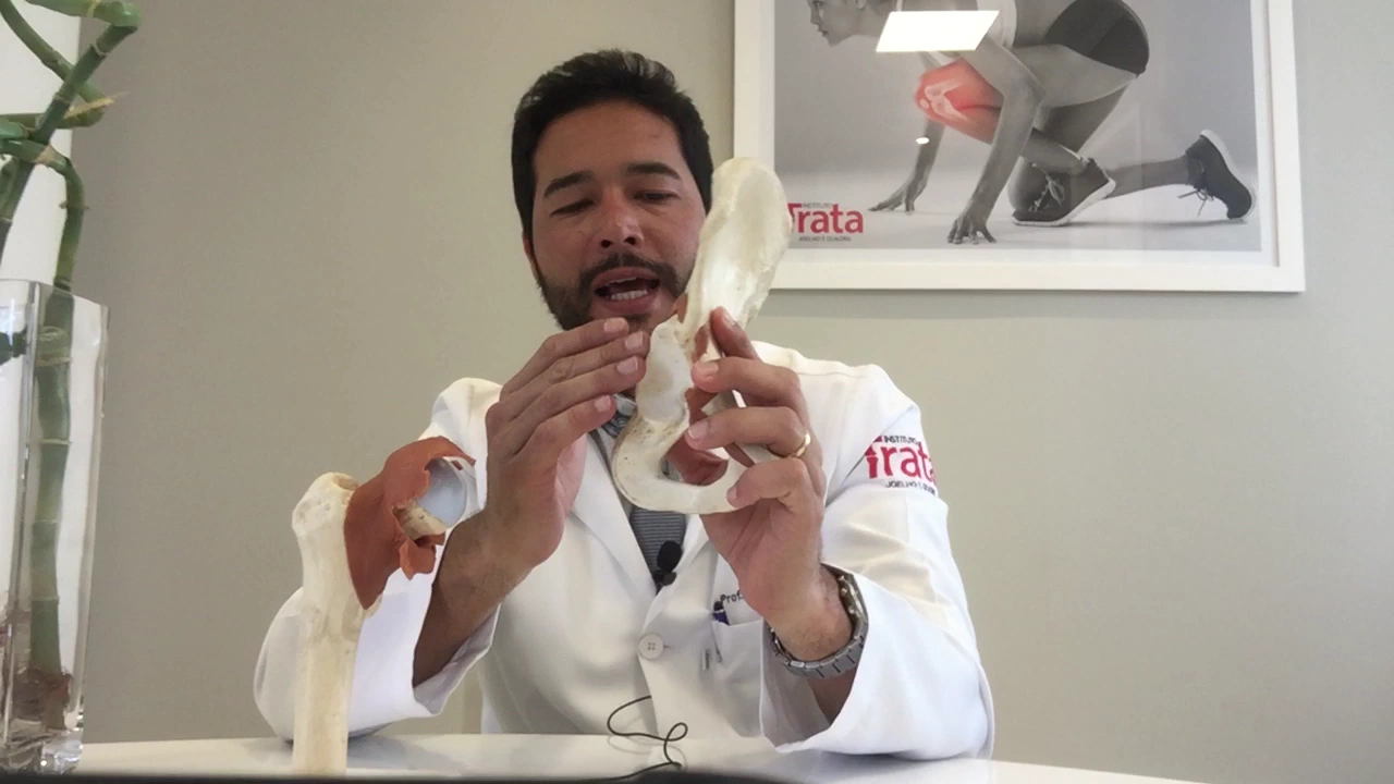Olá vou aproveitar essa oportunidade e bater um papo com vocês sobre o quadril essa articulação tão e importante de ligação entre a o membro inferior e a coluna e eu vou dar um overview uma visão geral sobre o que é essa articulação e principalmente falar um pouco de algumas lesões que a gente encontra no quadril E aí abordar aqui rapidamente também eh algumas formas de tratamento não cirúrgico tratamento conservador né então ah o quadril Na verdade ele é composto por esse osso né que é o osso da pelv ou da bacia Lembrando que essa é