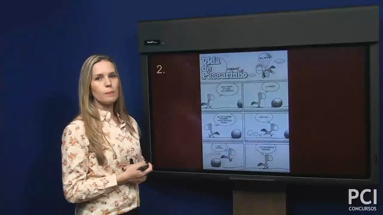 ea compreensão desse texto depende dessa identificação então da habilidade de identificar que esses pontos aparecem tanto em um quanto no outro texto1 texto2 nós temos aqui a mistura de da linguagem verbal e da linguagem não-verbal ea intertextualidade aqui também é muito importante para que você interprete corretamente não vamos lá nós temos aqui um texto típico do do ponto vida de passarinho e na o seguinte pensamentos uma pedra no meio do caminho e agora se eu tivesse talento faria um belo poema mas eu sou apenas um passarinho prático como nós podemos observar aqui uma pedra no