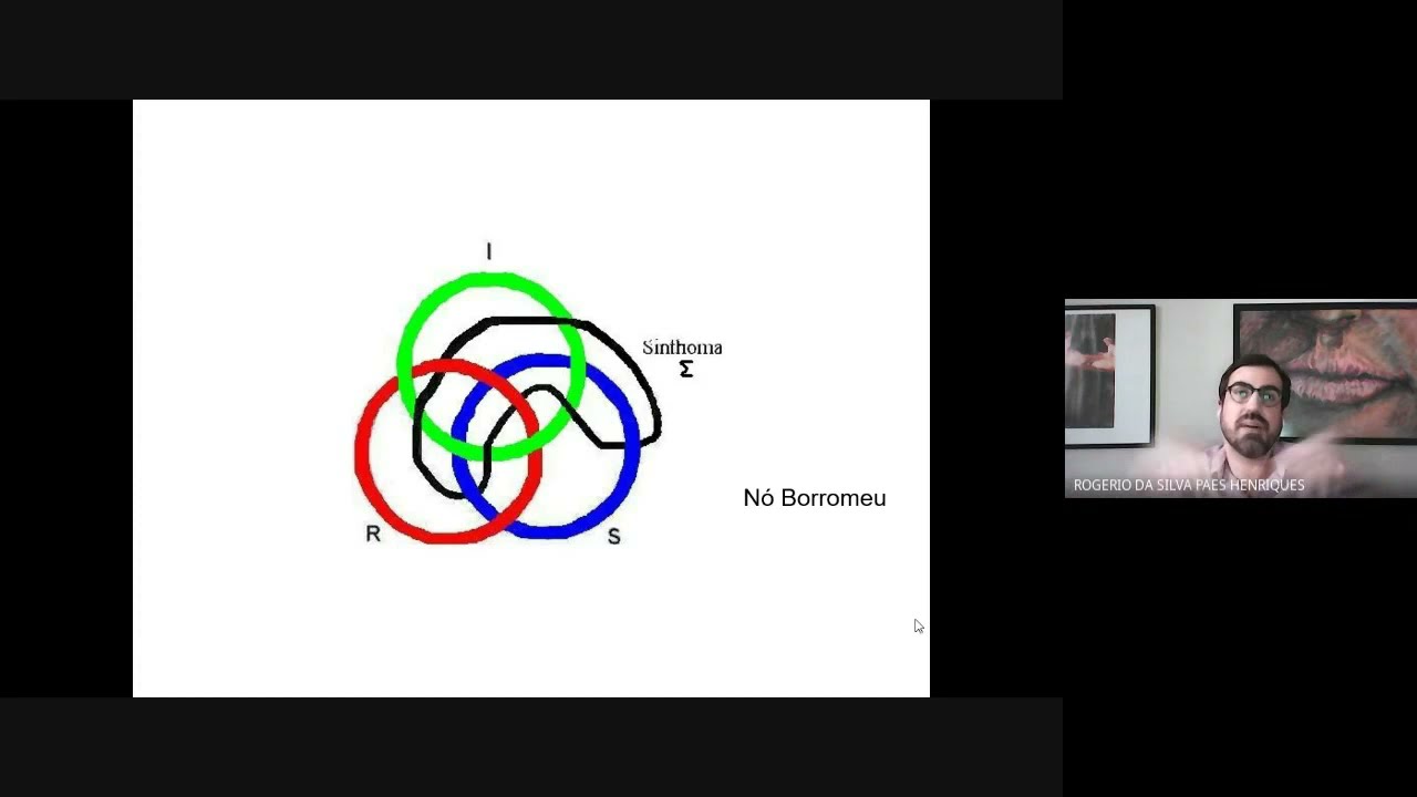 é justamente como na ausência do nome do pai né então vamos supor que não exista Esse é mandamento aí do Elo preto que é modo os registros e passa por cima do vermelho por cima do verde por baixo do vermelho depois por cima né Por Baixo até em todo tipo de andamento depois eu posso até fazer quando a gente voltar presencial tá é muito bacana isso né aí vocês vão ver como que é flexível maleável né esse nó borromeano que é o nome da nem e a neurose é uma estrutura flexível e etc a imagina