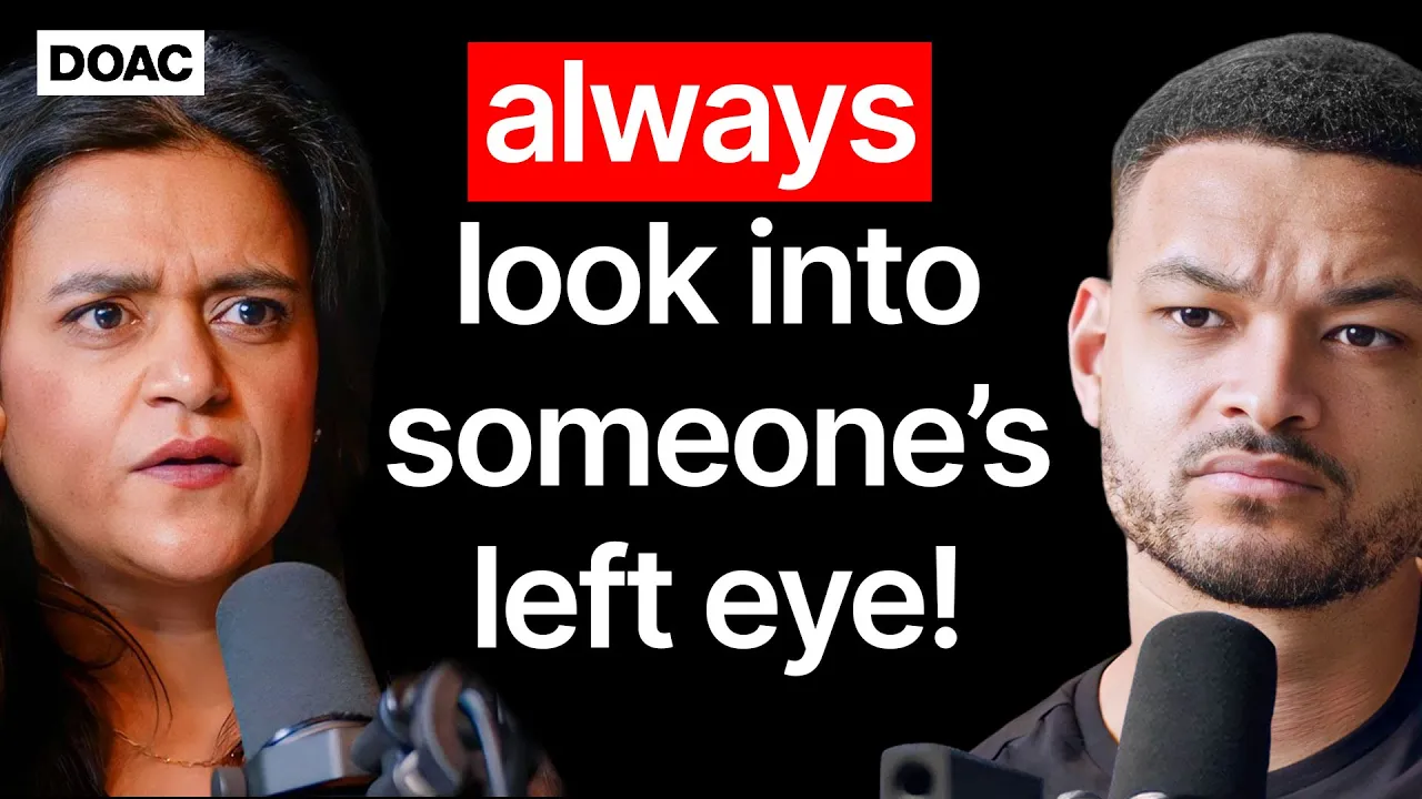 kind of triggers something a bonding response that is quite innate in US yeah okay super interesting what else what else if I'm trying to bond with someone yeah so everybody listening to This right now whether they're in work they're in sales they they're looking for a partner whatever it's a nice little trick to look into someone's left eye I'm gonna only look into your left eye for the rest with your right eye how do I I'm just looking with both yeah you feel like that but once you start doing this I promise you you will