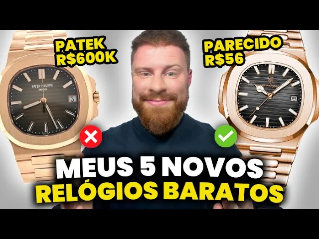 fala time tudo certo com vocês meus cinco novos relógios masculinos baratos Eita só até r$ 50 da minha coleção que se parecem muito com relógios icônicos de marcas de luxo sim sim sim não sei se vocês assistiram mas alguns meses eu postei aqui no canal a minha coleção de relógios romage quer dizer os meus relógios baratos que são homenagens né que são inspirados em relógios icônicos pois bem eu comprei nesses últimos tempos nessas últimas semanas mais cinco modelos novos animais inclusive que estão por aqui meu Deus do céu que eu já vou mostrar para vocês inclusive um tá no meu punho aqui ó que eu tô apaixonado enfim e eu quero compartilhar com vocês agora cada um deles no detalhe vamos lá então time Bora que Bora mas antes se você ainda não me conhece muito prazer eu sou o coloral fundador aqui do macho moda o consultor de estilo de vocês no YouTube Eu estou com microfone novo aqui olha só que chique meu Deus do céu microfone de podcast tá ligado Então tô me acostumando aí na nov usabilidade chim Mas enfim algumas coisas vão mudar a partir de agora aqui no canal em questão de qualidade iluminação câmera aguardem aguardem aos pouquinhos a gente vai atualizando tá ligado mas enfim sem mais delonga sem mais enrolação Vamos começar com este cara por aqui em primeiro lugar deixa eu mostrar para vocês aqui ó vou mostrar para vocês no detalhe também no meu punho e também aqui na internet na página que eu comprei o relógio que é este pued gar eu chamo chamo de poedagar na Rosé que é uma romagem do patec SIM do patec Felipe nautilos sim sim sim te Olha só esse relógio por aqui é animal deixa eu abrir a página aqui ó que eu comprei o relógio lá da Shop ele tá custando não vocês TM ideia TIM não vou até falar baixinho por aqui ó R 56,18 você tá maluco Tim você tá maluco olha o preço desse cara por aqui 56,18 não dá para acreditar ele tem 4. 8 de 730 vendas e 382 avaliações está disponível está disponível né nesse aqui ó Rosé com preto Rosé com mostrador em preto tem também aqui ó no Rosé com mostrador Azul hum bem bonito inclusive viu bem bonito mesmo na pulseira de couro Olha só com o mostrador verde e a caixa em prata e também no mostrador Branco sensacional time eu já tinha né esse pued gar por aqui mas o outro em pulseira de prata e no mostrador azul e aí quando eu encontrei esta cor por aqui no mostrador preto com a pulseira por aqui ó com o relógio em Rosé em Gold brose Rose Gold né Eu simplesmente pirei pirei pirei pirei deixa eu ver as informações do relógio aqui ó se a gente encontra vidro mineral tá Lia de Aço etc etc etc di na caixa 40 mm não é um relógio grande é um relógio que se adapta muito bem e se equilibra muito bem principalmente para quem tem o punho mais fino Ok Tim Então realmente uma uma baita compra por R 56,18 E vocês vão ver no link da Shop por aqui na hora de você fechar a compra ele já vai dar ali no carrinho né o imposto que você vai pagar e ó Vale a pena vale a pena demais mesmo com o imposto de importação vale muito a pena para vocês terem uma ideia Tim na éa eu paguei a taxa de IOF que foi 18 Cent frete ficou de graça eu tive um desconto no frete e paguei r$ 96 de ICMS Esse foi o imposto que eu paguei em cima deste relógio deste poedagar por aqui em Rose Gold sensacional Então essa primeira opção de relógio muito massa né Tim o link para você comprar esse relógio por aí romage aqui na descrição para vocês ok para quem curte então o patec baita opção segundo lugar time desses últimos relógios que eu comprei agora nesses últimos tempos tá no meu punho olha que coisa maravilhosa maravilhosa é esse ronat Big eu chamo de ronat Big né que é uma romagem do Big Bang Pois é olha que e sensacional TIM é muito similar como vocês estão vendo na tela por aí né comparando os dois realmente o visual é extremamente próximo um relógio realmente de presença de atitude um relógio que tá com nota C aqui no link da shope tá com oito vendidos e quatro avaliações e ó eu posso dizer eu tô pirando pirando pirando nesse relógio o fecho dele é diferenciado olha só que legal ó ó vocês estão vendo por aqui ó diferenciad issso é um relógio que tem estrutura bacana o material É muito bom também enfim ó como vocês sabem né Eu não tô falando por aqui que são relógios que você vai levar pra vida inteira de um relógio por exemplo que esse que custa 77 que você vai passar de geração para geração mas se você curte visual tá e não está se importando muito com Pô o mecanismo do relógio que vai durar por décadas e décadas que qu é um relógio mais pontual para você usar no dia a dia isso aqui pode ser uma baita opção tá Tim porque realmente não é um relógio ruim é um material bacana etc etc etc mas é muito barato né R 77,23 neste relógio por aqui nesse ronat Big Ok time ó ele tá disponível no azul Olha que bonito azul com Rose Gold meu Deus do céu esse aqui é legal demais hein Nossa essa parte aqui ó desses parafusos que a gente encontra no aro da caixa por aqui também nossa dá um visual Industrial pro relógio né uma pegada bem robusta assim bem forte PR PR pro acessório né que é realmente demais tá disponível no dourado com preto Olha que lindo também esse meu Deus eu quero todos eu quero todos Esse modelo no preto no All Black eu não tinha visto esse All Black hein eu não tinha visto deixei comi bola porque eu gosto muito de relógio All Black e no que eu comprei que é lindo também né esse cinza por aqui ó com essa pulseira de silicone e aqui o aro da Caixa É nesse hum grafite e temos também aqui ó no prata Ok como vocês viram por aí também o mostrador não sei se dá para ver na tela acho que dá para ver na tela o mostrador ele é tr D tá ligado ele tem realmente uma profundidade dá para ver um pouco do mecanismo do relógio e também tem aqui os cronógrafos Ok Tim