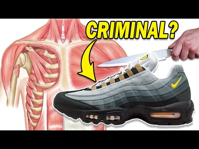 the Air Max 95 was the very first Nike I had the visible air unit in the forefoot and this shoe caused a riot so we're going to cut this thing in half run through the test to figure out if there's actually pressure in the air units how easy is it to pop how much air is inside of there does the air actually do anything and once it's popped are they still wearable and most importantly why did this random shoe cause a riot this video is sponsored by bright Cellar a Cool brand that's combating wine snobbery and they'll send you a box of personalized wine every single month and to be honest I'm not much of a wine connoisseur and that's why I like stuff like bright sellers because it's a perfect way for people like me who don't have the time to learn an entire industry and get a taste for something because they give you a seven question quiz and they match the wine to your taste to help curate your palette and you can choose from 12 different plan options and you get 100 plus varietals from 80 plus wine regions delivered right to your doorstep and each box comes with an educational card that outlines tasting notes pairings best serving temperatures and or Origins which to me like I said is the one thing that I just struggle with with any of this kind of stuff is I'm just like oh it just all tastes like wine or coffee to me but this makes it so much easier to actually learn and enjoy the stuff that you buy and now that it's summer there's plenty of reasons to get bright sailor while you're lounging at the pool or grilling out with your friends trying new and unique wines that you couldn't find anywhere else and honestly these cards make this whole thing super intriguing to me because you could have people over and you can go through this whole box and each taste it and kind of start developing that palette and the taste for this wine so thanks to Bright Cellar for giving my followers the first six bottle subscription box that's usually 150 dollars for only seventy dollars so just click the link in the description and take the quiz and get started today thanks again to brightseller well to understand how this shoe started to Riot you have to understand the history that all started on March 26 1987 when Nike releases the Air Max one that started the whole visible air unit air Tech Trend that we cut apart last week let's go watch that if you haven't and this shoe was designed by the world famous Tinker Hatfield fast forward to 1990 and shoe designer Sergio Lozano started working at Nike on certain projects like Nike ACG tennis and training lines and then over the next few years Nike released a few more Air Maxes with 1991 the Air Max 180 91 as well the Air Max BW and 93 the Air Max 93 and then in 1994 Tinker Hatfield that we designed the Air Max One leaves the air max line and leaves the whole project to Sergio Lozano and so Sergio went to work on the next iteration of the air max line which would be the Air Max 95 and then in early 1995 the design for the Air Max 95 was finalized and Sergio had this to say about the design Nike focused mostly on 90 shoes primarily basketball shoes and Nike's running design team strongly encouraged him to take a risk and have fun with the design and bring the focus back to Nike's performance running category and Lozano said that he took inspiration from the eroding layers of rock like the striations in the Grand Canyon and the human body so the midsole allegedly represents the spine the gradual panels represents muscles and the laces represent the ribs and after all the design work and concepting in mid-1995 the shoe was released to the public and how was the reception not great not a huge success right off the bat and and there was a lot of opposition to this design for whatever reason and Lozano said there were lovers and haters but you know you're onto something when you get that kind of emotional reaction but fortunately over time it did become popular with certain youth groups and cultures especially in Europe and Australia it was also a Warn and adopted by famous rappers like the game Danny Brown Gucci Mane so now looking at the history how did this cause a riot well in the year 2000 some defects in the shoe led to the air unit squeaking with every single step and as soon as that started happening there was a report on the British TV show Watchdogs that encouraged owners to return the shoes to Footlocker where the riot took place and because of the chaos that happened there the owners that were riled up by the TV show and wanted to get their money back where eight people got arrested and one police officer got injured so a fairly sizable Riot over a single shoe so I found it kind of interesting that the tech that put the shoe on the map was also the tech that caused a riot about this shoe and my favorite fact about this shoe was in the mid 2000s according to forensic science reports from the UK the Air Max 95 were an incredibly common shoe in crime scenes and it wasn't just a small amount it was according to them eight percent of typical pattern frequency distribution for Footwear marks from the UK police force made up of the Air Max 95s alone so a pretty controversial history for literally no reason because fast forward to the day and the Air Max 95s are still extremely popular and they've been popular over the last 20 years with this really popular colorway of the gray and green bean were released 10 times over the last 20 years and it really popped off in 2018 for whatever reason as you can see by this trend line of Google Trends and it's still right in that wave of success where you still see people wearing these all over the place so is this Tech that caused a riot that was also Innovative actually 10 Tech or is it just a gimmick we'll start going through this shoe starting with the shoe information first well obviously the brand is Nike the style is the Air Max 95 they weigh one pound they retail for 175 dollars and they're made in Indonesia and so if 