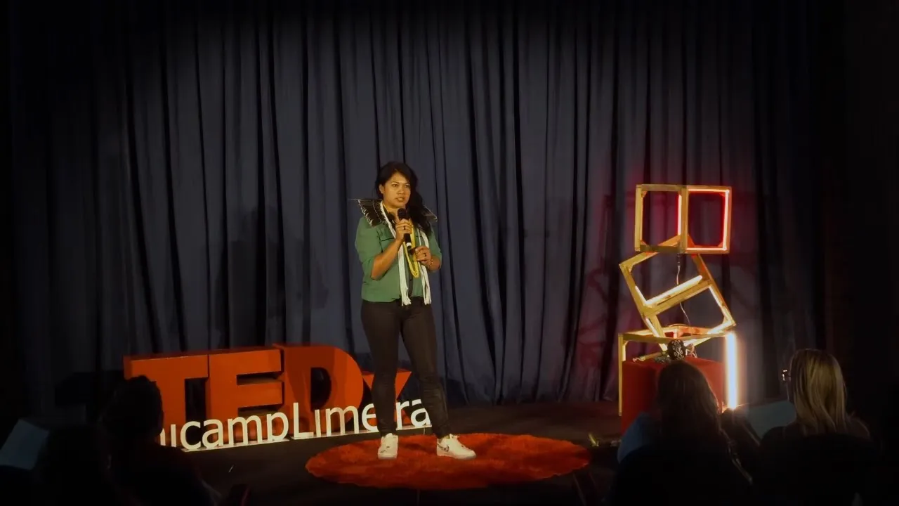 me perguntam você é colombiana e quando eu falo sou indígena e ela diz Nossa mas você parece ser uma estrangeira nós somos eu quero saber se essa plateia me representa se essa plateia quando sair daqui no final desse dia vai ter eh um sentimento de transformação e o que que vocês vão levar desse dia hoje eu fui convidada para falar sobre diversidade e eu particularmente me sinto incomodada em não ver a diversidade nesse lugar porque na Unicamp nós nós temos aproximadamente 500 é um número que eu tô chutando mas temos aproximadamente 500 estudantes indígenas de