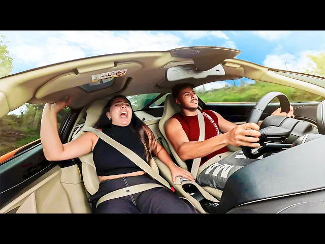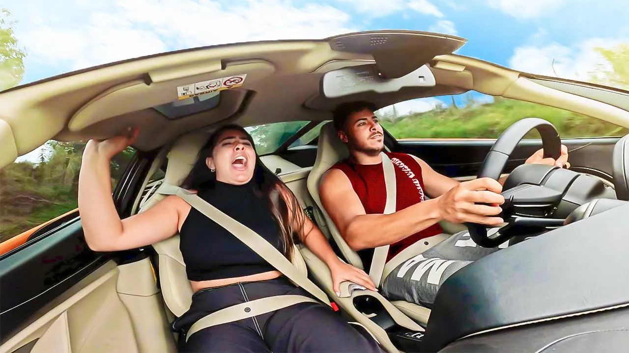 lá vamos fechar a porta aqui tá preparada Dani não quero ficar mano Dani deixa eu te fazer uma pergunta antes da gente começar Qual foi o carro mais forte que você já andou na sua vida a Ferrari a Ferrari Ferrari Então tá bom vamos lá galera controle de estação em modo track controle de estabilidade desativado vamos começar então a brincadeira Air devagar passa devagar começar para um azinho só pra gente ver daí não assusta tanto Ah [Música] não meu deusu ENEN a eu vou vomitar a eu vou vomitar você falou Ai é de levinho ai