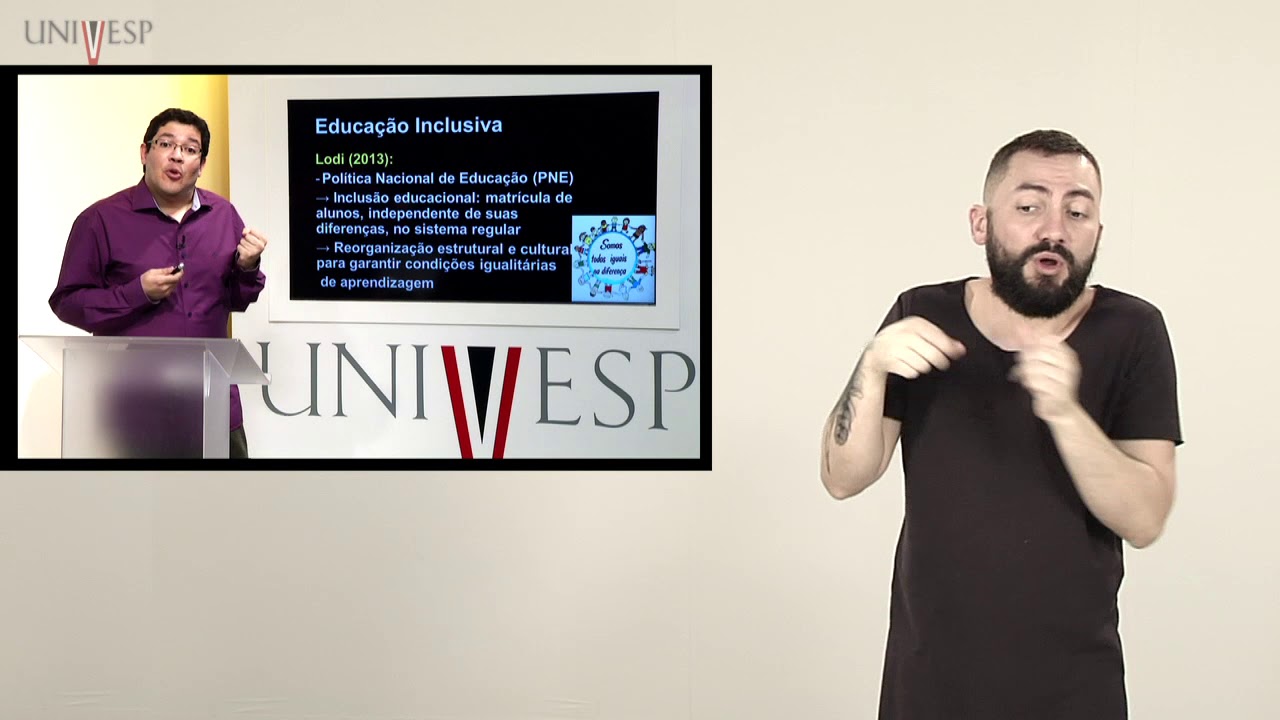 mesmo de retardamento mental como eu disse nessa visão o surdo é definido é pela falta de uma característica em relação aquilo que se observa na comunidade ouvinte majoritária e logo é concebido como um doente que precisa de reabilitação dessa forma a educação de surdos é vista justamente como um espaço de reabilitação de tratamento de cura da surdez com o fim de integrar o sul da sociedade para atingir esse objetivo a educação de surdos acaba da do seu currículo de forma a privilegiar o treino da audição e da fala em detrimento dos outros conteúdos ea escola