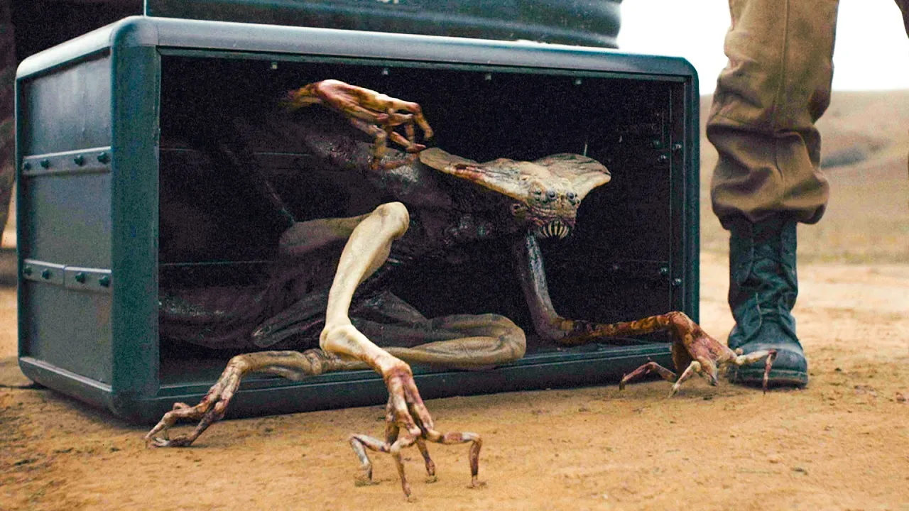 The Colonel reaches them and asks her if she changed her mind. She says that they have become fully symbiotic and can't be separated, as the soldiers take the creature out of the trunk. The Colonel drops the gun she was holding and the soldiers open the creature's enclosure.