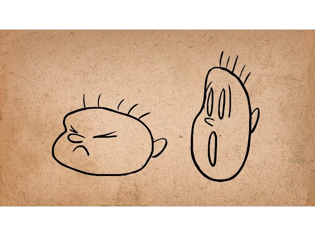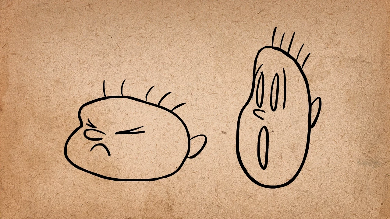 Then he squashes after he lands, before settling in his pose. You can also use squash and stretch to exaggerate facial expressions. Let's add some squash and stretch to this face.