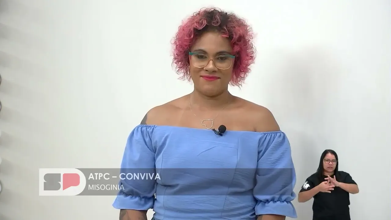 [Música] Olá educadores educadoras demais profissionais da educação da rede pública Estadual bem-vindos a mais uma TPC do conviva hoje trataremos de um tema das questões emergentes que desembocam na escola sobre o preconceito e entre eles um dos mais importantes que é a misoginia para tanto eu vou fazer a minha apresentação Eu sou uma mulher branca de estatura baixa cabelos grisalhos uso óculos estou trajando uma blusa preta uma calça listada e tenho o imenso prazer de compartilhar dessa TPC com a professora Juliana Lima autoridade no assunto para falar das questões de inclusão representante da Equipe técnica