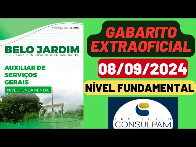 oba oba oba já estamos no ar e aí Dandan zitos e Dandan zetes moitos e Moises Professor Dandan ao vivo diretamente de Paraipaba City para todo o Brasil você já sabe né cara todo dia ten um videozinho novo da curso Pan para você e ontem galera eu fiz a correção desse concurso Prefeitura Municipal de Belo Jardim de Pernambuco tá e eu corrigi a prova do nível médio e hoje a galera do nível fundamental também me mandou as questões e eu estou trazendo para você a prova aqui de auxiliar de cozinha tipo um certo se você
