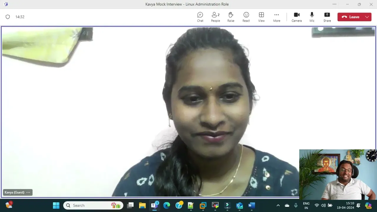 totally 5.8 years experience in IT industry and uh as a Linux admin I have 4.5 years so uh my roles and responsibilities are like managing L1 and uh L2 Priority tickets uh so I mean configuring I mean uh lvm I mean managing lvm and file system creations and user management and Disk Management and uh Hardware Replacements and uh uh upgradations and updates and uh installing packages through M uh by using M and RPM and uh yeah and so on okay okay so kavya uh I can see you have extensively work on this uh right Linux