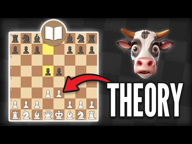m. was drinking a glass of Coke cero was now like printed on the world's most famous chess website I mean this was to me just absolutely crazy but it wasn't just the fact that my opening was printed here it was the fact that now after playing two chess moves E3 and D3 this is called the cow I don't think you understand how difficult it is to get an opening this early on in the game I mean there's a lot of people that could play E3 and D3 and now on the world's biggest chess website this is official Theory are you serious with me I thought this was absolutely incredible I couldn't believe it and so what I did is that I decided to go into into openings into the actual tab of openings and then I searched for the cow and here we have it this is the book theory of the cow there's so many variants there is just pushing your pawns one stop there is uh getting your Knights out all of these different variants are the cow but not only that they even implemented the bull variation which was a video that I did a while ago also calling it The Bull variation I couldn't believe my eyes this little joke that I had in my head was Now official Theory this everybody is official theory on chess. com like how this is just to me just so insane and I had to make this video to tell you about this because we have made chess history I know that this is stupid I know that this was just a meme opening in the beginning but in a way I feel like I have created something you know I don't know I have created something I have an opening yes it may not have my name and oh thank you it that it doesn't have my name cuz it wouldn't be this doesn't represent me I feel like this represents an idea this represents just the idea of Simplicity in chess and I think the idea that you don't need to play a super fancy opening to get an okay game and what I'm saying here is not that the cow opening is the greatest opening of all time because truth to be told your opponent is going to get a better position in the opening when you play it but what I was trying to prove was just that we could create something that was simple something that was fun and something that beginners all across the world could play just for the sake of having something easy to remember and they wouldn't lose that much on it I wanted to prove that openings are not the thing that make beginners lose a Chas I and I strongly believe that I think the tactics I think that General chess understanding is so much more important than openings at pretty much all levels apart from very high levels of Chess even in my level I can play this against people in my rating and I can win a lot of games and to prove that to you I'm going to play a Blitz game against someone that is around 2100 with the cow and if I win I will prove a point and if I lose I will just cry and never play it again but let me try to prove a point here all right let's play a game with black and I'm playing three plus two because that will give me a little bit of time to explain all my moves moov okay sorry so E4 I'm going to go E6 once again with the black pieces the very sad thing is that it doesn't say that it's the cow opening it says that it's the perk defense small center of the fence who even knows what the small center of the fence is I think that we should all do a stampede together and tell chess.