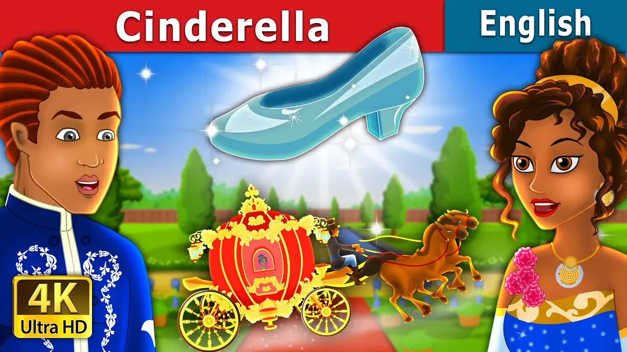 you [Music] you are very kind foreign but remember my child the magic will only last until midnight remember to reach home by then oh yes godmother I will take care of that she waved goodbye and set off for the ball when she entered the ballroom all the heads turned towards her the stepsisters and the stepmother couldn't recognize her how beautiful she is a handsome prince saw her and fell in love with her at the very first sight he approached her hey beautiful lady may I have the pleasure of dancing with you the prince did not