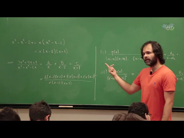 [Música] é um comentei mas vamos pensar se aqui fosse uma raiz múltipla o que você faria é importante a gente destaca nesse caso também se aqui fosse um x - alpha 1 ao quadrado como é que fica é esse cara sobre estes - alpha 1 uma outra constante sobre isso - afirmou quadrado e se então a partir dessas e conseguem ferir quem são as outras são alguns exemplos primeiro vamos calcular a primitiva de she's a quarta mais dois x + 1 sobre x ao cubo - x quadrado - 2 x 1 tá bom vamos lá