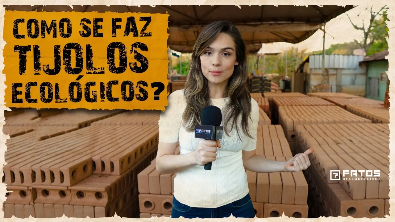 E aí [Música] oi oi galera sejam bem-vindos a esse novo quadro da fatos desconhecidos sobre como as coisas são feitas hoje a gente vai falar sobre como os tijolos ecológicos são feitos gente tijolo ecológico não é porque ele é feito de papel papelão não tá É porque ele utiliza por exemplo de terra de escavação rejeito de areia e também não precisa ir ao forno que é uma grande vantagem quando eu digo que ele não vai ao forno é porque não vai lenha no seu processo ao contrário do tijolo de cerâmica estudos apontam que para produzir
