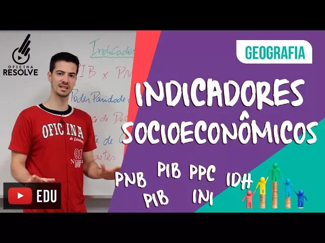 e [Música] fala pessoal sou Professor Luiz Felipe para o seu geografia do colégio Oficina do Estudante e novamente para conversar um pouco dessa parte da geografia que estuda os aspectos socioeconômicos trago hoje para vocês alguns indicadores socioeconômicos que costumam aparecer nas provas dos vestibulares nos jornais nas manchetes nas notícias e que nos ajudam a compreender um pouco mais a nossa situação social e econômica não só dentro do país na nossa sociedade mas também permite algumas comparações com outros países e uma análise mais atenta sobre a maneira como a sociedade do ponto de vista econômico vem