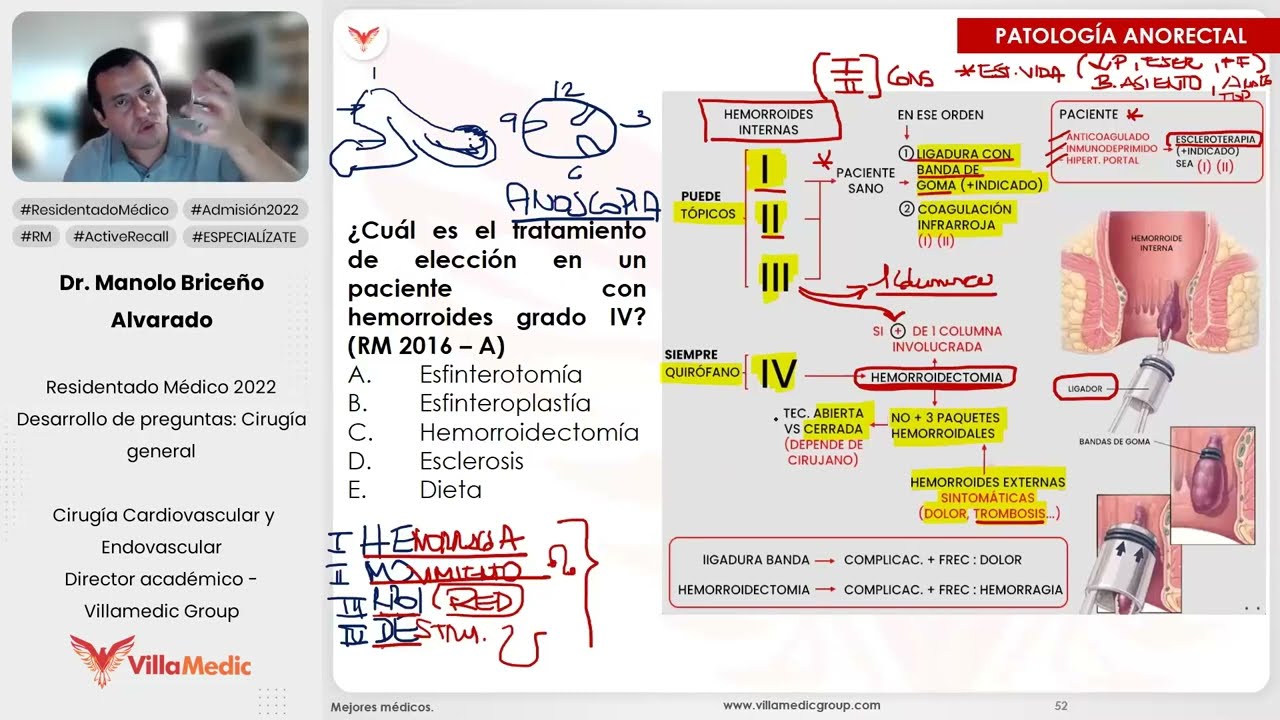 ley es que no se quita más de tres paquetes hemorroidales señores es una pregunta clásica máquina Qué buena doctor eso siempre ha tenido duda no se quita más de tres paquetes hemorroides Por qué doctor porque si no el paciente se queda prácticamente sin soporte sin soporte y sin incontinencia se le escapa luego las heces se le escapa todo Ah bueno así se hace el uno el dos tres cuatro para responder preguntas de examen Y hasta preguntas difíciles correcto doctor y la hemorroidectomía qué técnicas existen existen Existen dos técnicas abiertas Existen dos que es la técnica