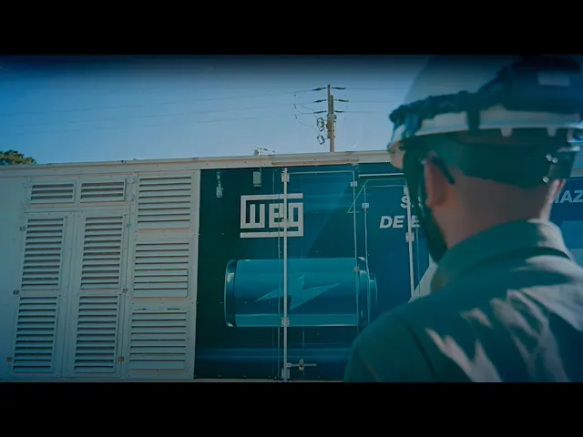 estão se tornando economicamente viáveis a um número cada vez maior de aplicações a Veg fornece soluções completas que vão desde aplicações em pequenos comércios e indústrias até grandes sistemas conectados a usinas de geração e sistemas de transmissão e Distribuição supervisor of application Engineering here at WEG best and I'd like to Welcome you to the Berry site our first best installation so as a System integrator here at WEG um we start with Talking with the customer and understanding Project requirements uh from there we typically come up with initial Concept uh that Will look like a single