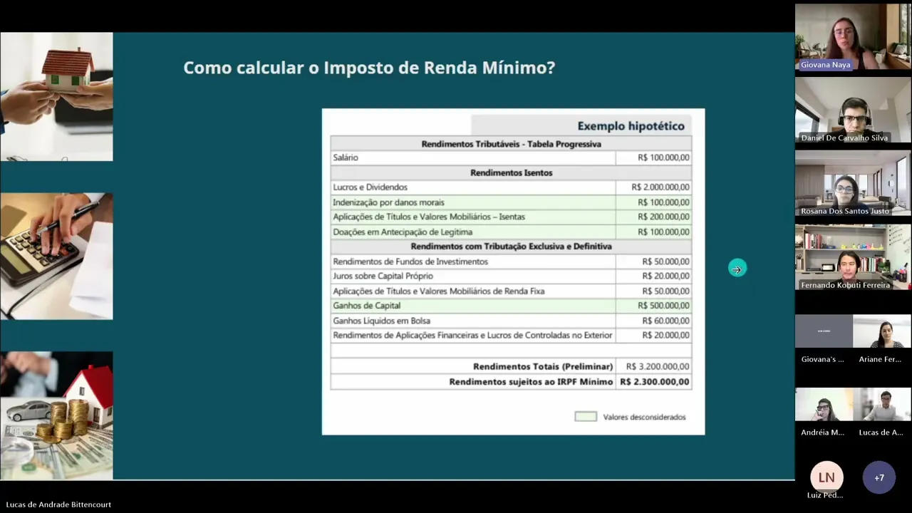 Então o cálculo ele é um cálculo mais complexo mesmo. Por quê, Geovanda? Porque o imposto dele é mínimo de 10%.