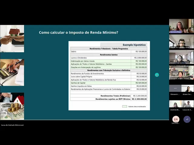 Por quê? Porque ele tem já um valor que é uma renda que é altamente tributável e que a gente vai compensar aqui com o valor de dividendos porque o imposto mínimo de 10%. Não é que eu vou pagar 10% sobre os dividendos.