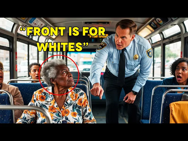 the bus was electric every passenger on edge as the standoff continued outside more people gathered their murmurs joining the the faint sounds of car horns and distant chatter Evelyn didn't Move her quiet dignity speaking louder than any argument could she was a pillar of resolve in the chaos refusing to back down from the Injustice thrust upon her the crowd outside the bus grew larger their Curious murmurs floating through the open doors inside the atmosphere simmered with tension Evelyn remained steady her posture unyielding as the officers exchanged looks Unsure how to proceed passengers shifted in their