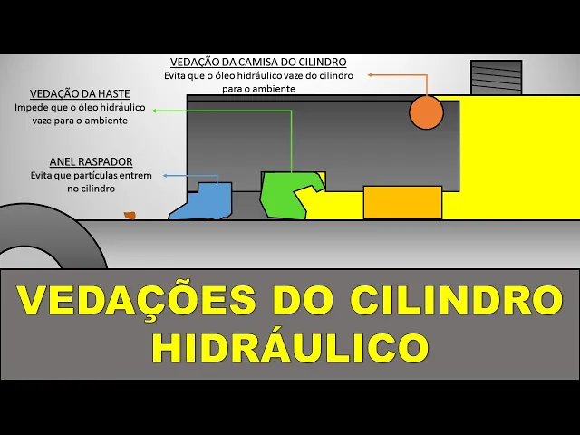 e fala gurizada um dos últimos vídeos aqui do canal eu expliquei para vocês quais são os principais componentes de um cilindro hidráulico no vídeo de hoje você vai aprender sobre as vedações de um cilindro hidráulico especificamente sobre as vedações que estão presentes no lado da haste do cilindro então aqui você consegue observar que nesse cilindro nós temos algumas vedações e neste vídeo estarei explicando para vocês qual é a função de cada uma dessas vedações acompanha o vídeo aqui que você vai aprender então para ficar mais fácil a explicação das vedações imagine que nós fizemos um