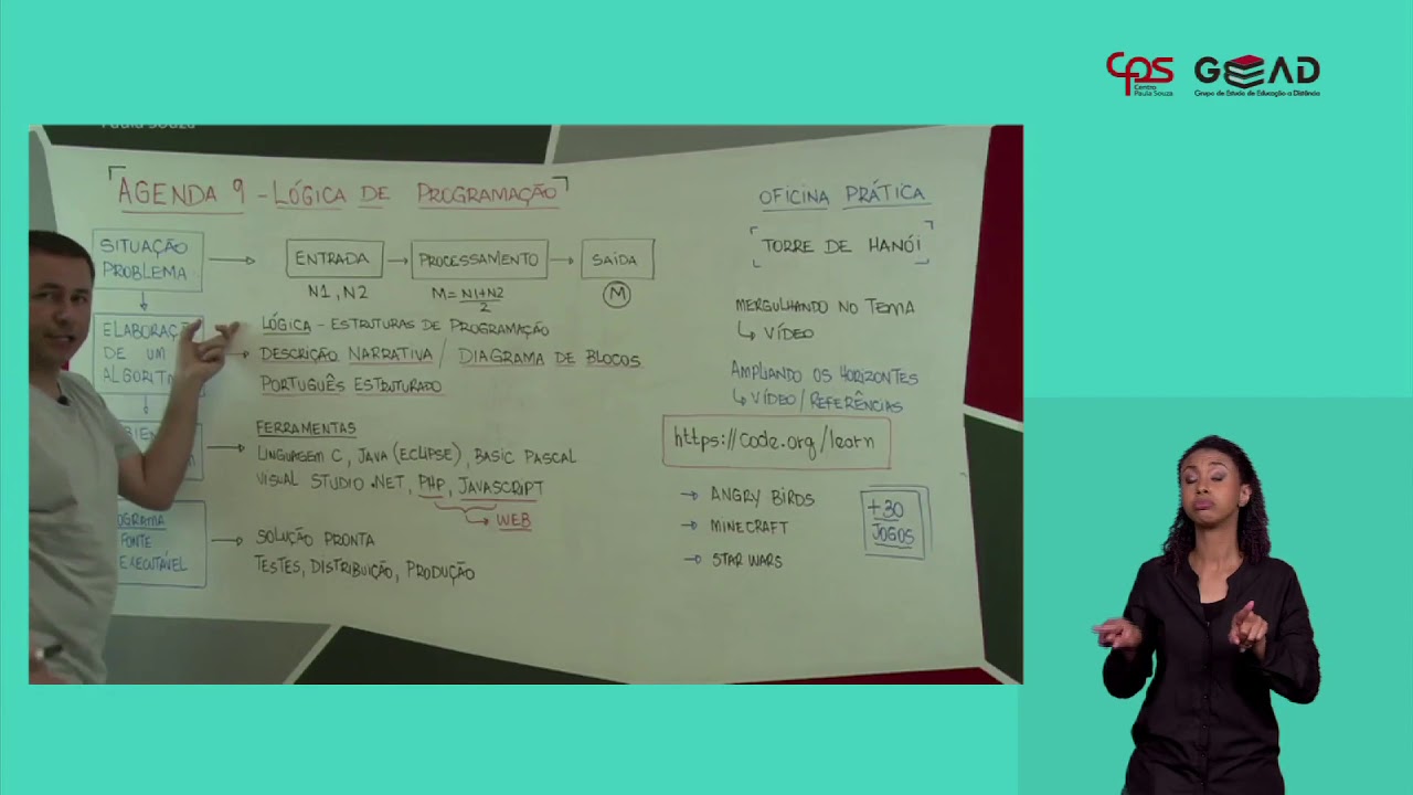 e fluxograma pode ser elaborado por meio de programas específicos ou até mesmo no microsoft word ou vídeo além do fluxograma você pode escrever um algoritmo por meio dos seus códigos ou portuguesa estruturado como preferem alguns autores esse tipo de construção não tem o formalismo da linguagem de programação e seus comandos obedece sempre uma estruturação básica com o cabeçalho declaração instruções a um se preocupa ainda com o fluxograma do código romanos isso tudo é tema para o fator encontra nosso obrigado chefe por hoje é importante que você futuro profissional da programação tem em mente que esse