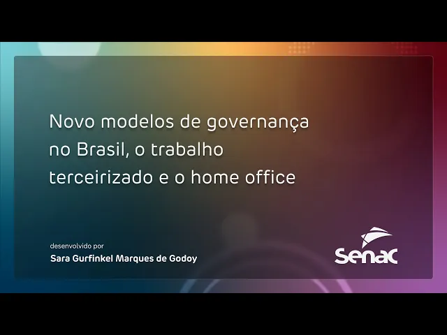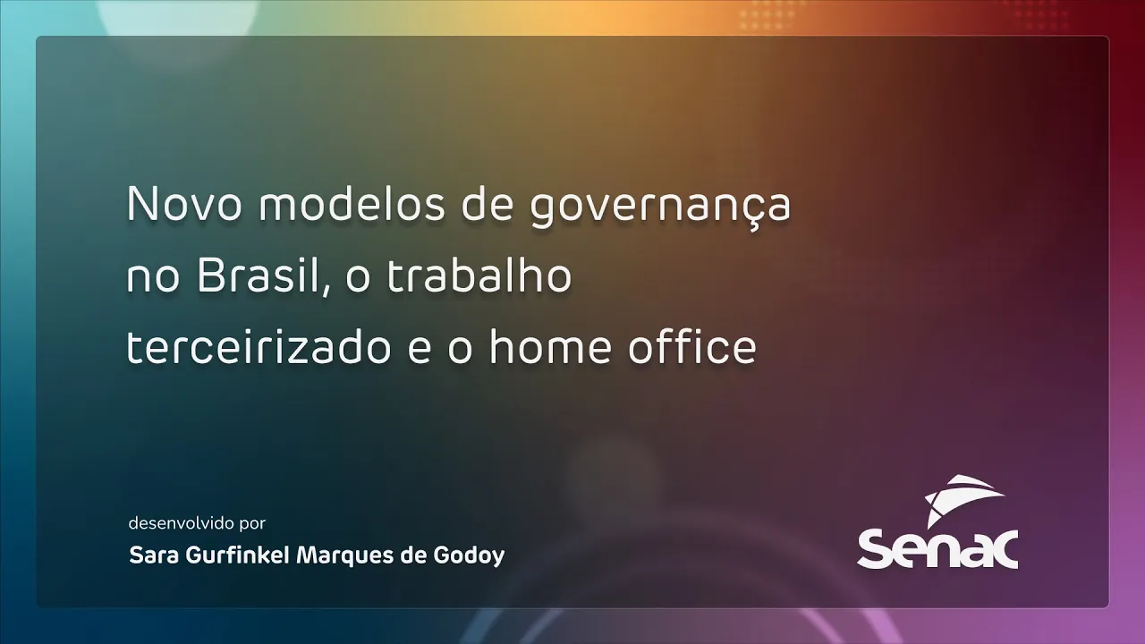 Novo modelos de governança no Brasil, o trabalho terceirizado e o home office Olá! Este vídeo apresenta dois exemplos práticos de instrumentos de governança corporativa: o novo modelo novo de regulamentação da contratação de mão de obra terceirizada e a regulamentação do trabalho remoto no Brasil. Vamos lá?