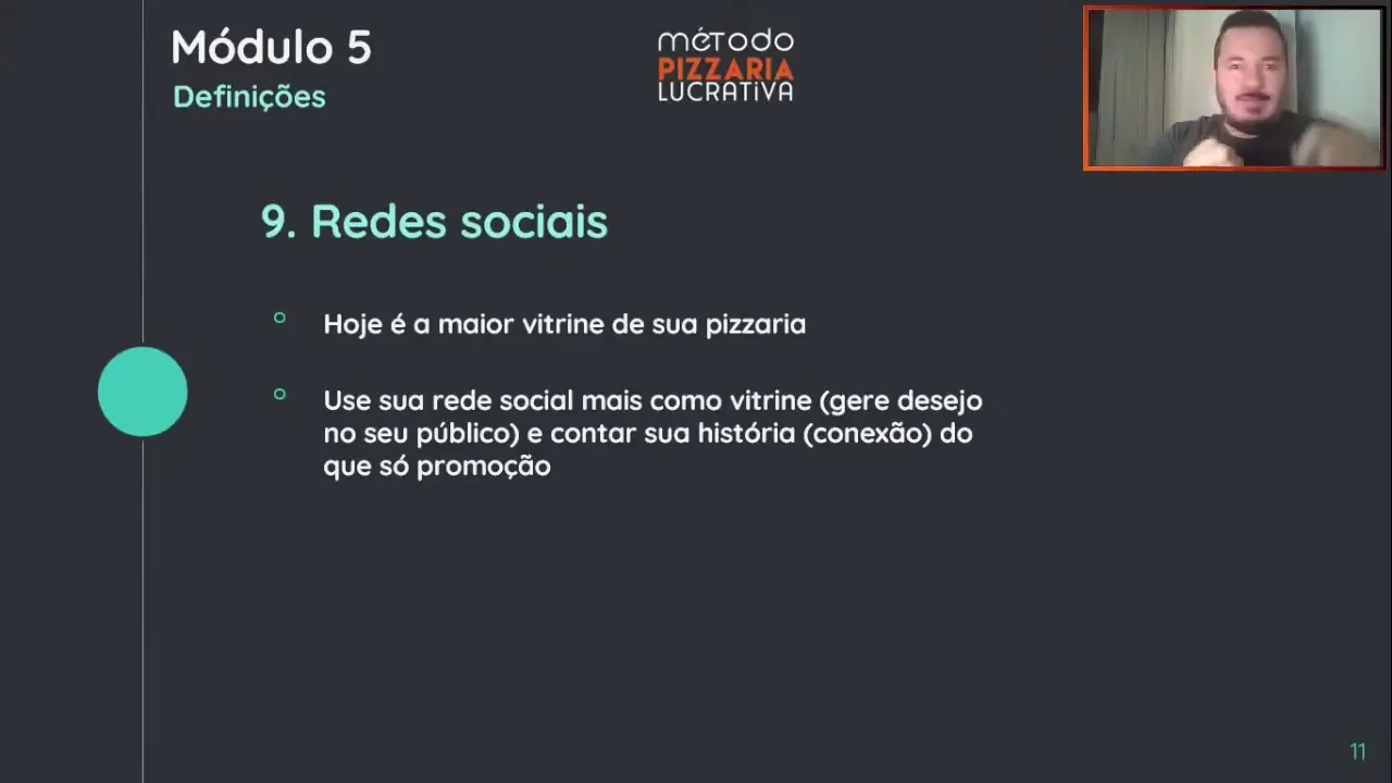 que a gente colocou na primeira aula e na segunda aula já começa a usar aquilo em prática e começa já a a a criar expectativa no seu no seu no público da sua cidade ó vem aí Pizzaria tal ou se você ainda não tá ó chegamos agora na rede social então e começa a divulgar hoje a sua maior vitrine é a rede social e Como que você pode gerar essa essa ser a vitrine é você gerando desejo é você contar sua história é você não ficar só colocando promoção eu nem aconselho que na sua rede
