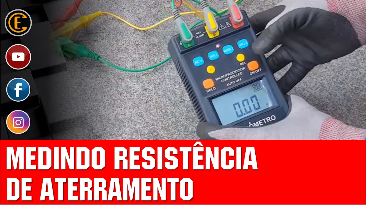 bem-vindos electricity no vídeo de hoje nós vamos mostrar na edição de um sistema de aterramento conterrânea digital então se liga vamos então conectar a ponteira verde na letra é a poeira amarela na letra p ea ponteira vermelha na letra c ligar o aparelho e verificar se há necessidade de troca das pilhas caso este símbolo permaneça acesa vamos pressionar então a escala de 40 anos e fazer o procedimento de descarregamento valor de resistência residual dos carros que acompanham o produto pois eles podem causar interferência na medição desejada vamos fazer a união das garras e logo depois