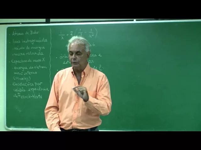 emitir radiação e esse raio vai mudando continuamente não pode mudar continuamente então ele não pode sair daí então a idéia da existência de órbitas e estacionárias que é o nome que boa vai dar a essas obras admissíveis para o átomo de hidrogênio é o primeiro passo que ele dá certamente é um passo sem a menor justificativa do ponto de vista de princípios físicos né é como se tivesse introduzido um princípio físico novo né que não faz muito sentido e bossa lia disso uma vez que ele determina que essas obras têm que ser discretas e estacionárias
