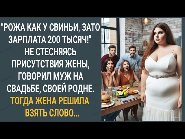 Иван верил и ждал что она поможет ему куда-то устроиться Туда где хорошо платят Ну в крайнем случае со своей зарплатой в 200.000 Она и сама может содержать мужа Надежда никак не могла подумать что она стала жертвой муж она себя любила и ценила и считала что она может быть интересна Мужчинам не только из-за денег Но только на свадьбе до неё дошло что за человек Иван муж оказался не таким добрым и хорошим как она считала родня Ивана казалась вроде бы нормальной они были счастливы и так и прыгали вокруг невестки Надежда ощущала себя неловко от этого внимания но