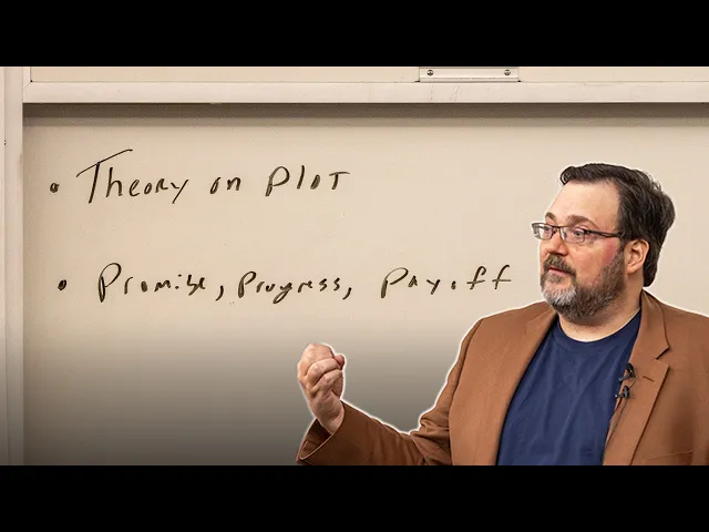 Hey welcome to Brandon sanderson's 2025 writing science fiction fantasy lectures today we're going to cover plot specifically the ideas of Promise progress and payoff so I hope you enjoy the lecture we'll be on plot next week as well hey everybody Welcome to class it's science fiction fantasy writing [Applause] yay because this is a year where we're recording it I am on the ball and have Uh outlined the rest of the semester for you so you can see what's coming up uh and I guess if you're planning to uh I don't know go to Ruba one