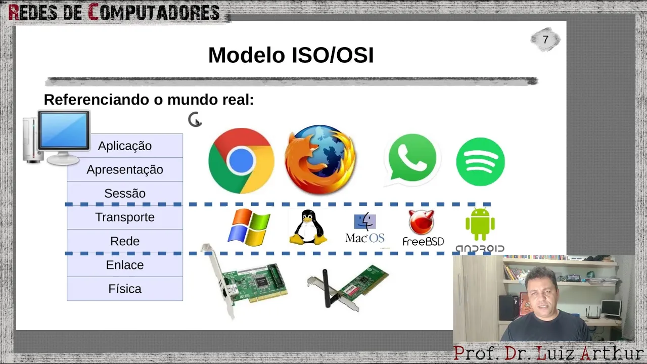 e aí o olá eu sou professor luiz artur esse aula de redes de computadores bom e mas principalmente chamar lá a revisão do modelo iso-osi kant já viu esse modelo no canal de forma mais detalhada e este resolver hoje os principais pontos revisar os principais pontos a respeito desse modelo outra coisa que que é o modelo iso-osi o que rose ao modelo que tenta padronizar transmissão de dados e redes de computadores tão idosa ea junção de duas filas uma é ir e significa na empresar incorporação internacional ali a padronização que pode usar tudo de processos
