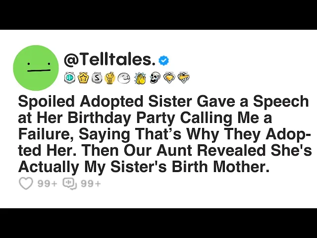 My spoiled adopted sister gave a speech at her birthday party, calling me a failure, saying that's why they adopted her. Then our aunt revealed she's actually my sister's birth mother. I have been brought up alongside my adoptive younger sister, Angela, and she is, for the lack of better or more accurate adjectives, a total spoiled brat and a horrible person in general.