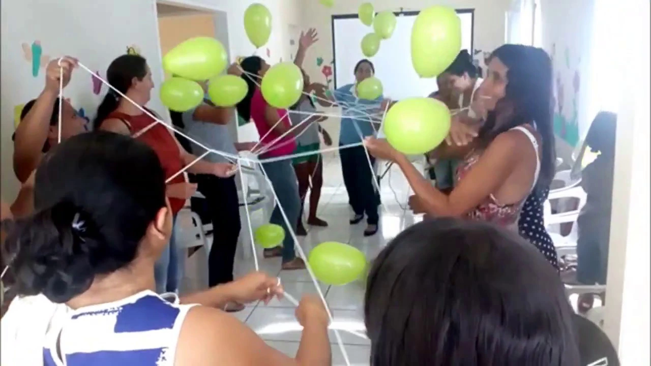 olá pessoal sejam muito bem vindos a mais uma dica não perder grupo iii semana pra vocês mas eu já estou muito legal pra você que quer fazer um trabalho com grupos de mães [Música] primeiramente o que eu fiz foi distribuir para o grupo das mães de chico as bolas de aço cru e eu brinquei com ela só faz de conta que essa bola de assou é o seu filho o conjunto os seus filhos no caso você tenha imagina pedindo aquelas ativas em encher sem as bolas que amarrassem quando todo mundo estava com sua bolinha pronta