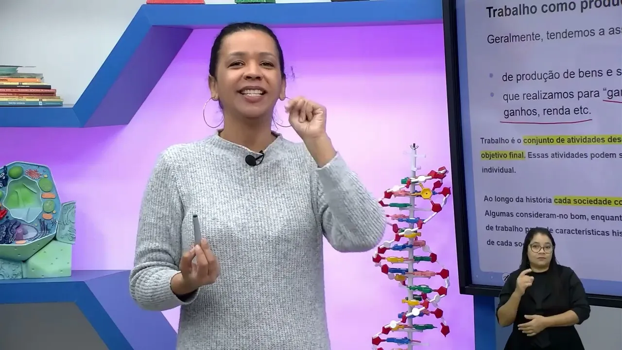 objetivo aqui é a gente abordar esses tipos de trabalhos e o objetivo é compreender que o significado a organização e o valor do trabalho variam conforme o contexto histórico e geográfico e de acordo com as circunstâncias em que ocorreem então a gente falou aqui sobre os objetivos e o conteúdo eu vou pedir para que vocês assistam aí o saiba mais a sessão saiba mais com a técnica do lemov e a gente já retoma aqui o segundo bloco para ver como funciona essa aula até [Música] lá olá professores eu sou a Vivian e não saiba mais