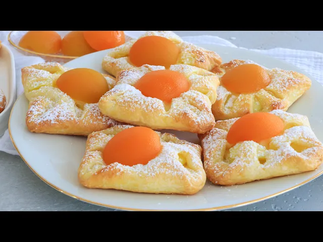 Pfirsich Pudding Teilchen mit Blätterteig I Blitzrezept