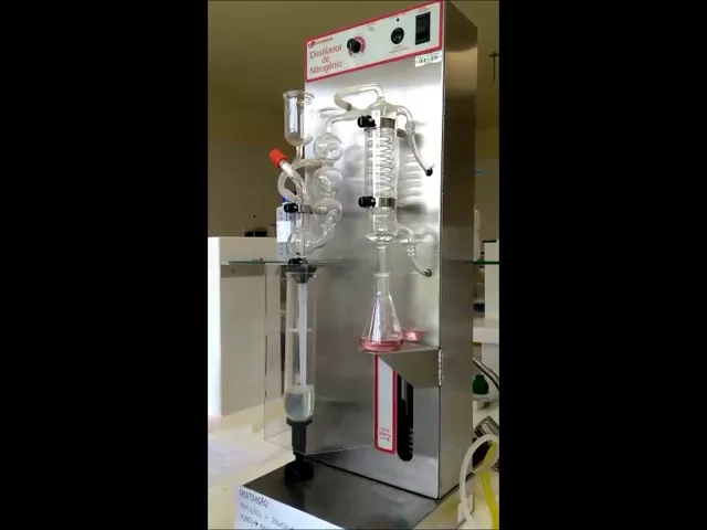 equipamento esse equipamento aqui esse sistema as reações químicas pode acontecer são necessárias que acontece todas num sistema fechado trabalhar com sistema fechadinho e qualidade bom voltando a meta nossa também era difícil depois do tempo um é primeiro vou colocar 10 ml de ácido bórico a 2 por cento então fiz uma solução de ácido bórico 2% coloquei aqui dentro com auxílio de uma proveta meta de 3 a 5 gotas indicador mesmo dentro da empresa 5 a solução declara fica agora vermelho vermelho então todas essas coisas também importante pra gente saber se está fazendo por onde as