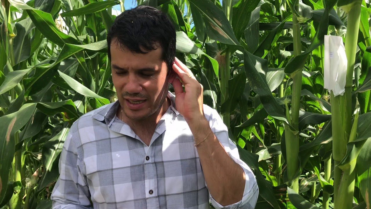 [Música] eu sou professor joão andrade aqui da unesp de ilha solteira trabalha com genética e melhoramento de milho e este vídeo tem a finalidade de mostrar aos estudantes e melhorista iniciantes como se faz com a organização artificial e milho dentro de um programa de melhoramento em andamento o sistema reprodutivo do milho é o seguinte é uma planta que tem os dois sexos na mesma planta nós temos aqui a parte masculina onde é produzido o pólen e aqui a parte feminina onde recebe o borg para fecundar os óvulos reformar os grãos da spe a parte masculina