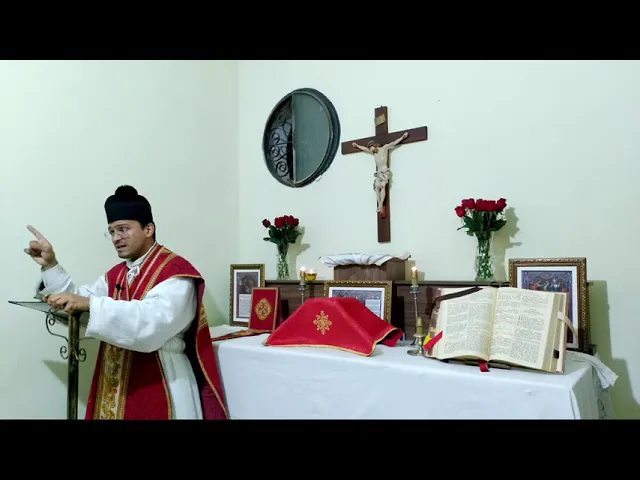 a tua de Ah e outra esquerda e Jesus respondendo disse não sabeis o quê pedis poderes vos beber o cálice que eu hei de beber eles disseram-lhe podemos disse-lhes efectivamente a vez de beber o meu cálice mas o quando está diz a minha direita ou à esquerda não pertence a mim ou conceder vou a voz mas aqueles para quem está preparado por meu pai em nome do pai e do filho e do Espírito Santo amém louvado seja nosso senhor Jesus Cristo e o podem sentar-se amadas almas hoje nós celebramos a festa de São João Evangelista