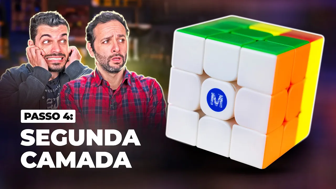 sentido de você ter que prestar realmente muita atenção tá então lembre das regras paciência tá gente paciência demais agora para você não errar porque senão tem que voltar tudo desde o início e tá tudo bem faz parte também e claro regra básica sempre analise e depois Execute os movimentos tá bom neste passo nós precisamos então finalizar a segunda camada do cubo ou né se a gente pensar no nosso prédio finalizar aqui o segundo andar Lembrando que a primeira camada está pronta né Sempre verifica se tá tudo ok ah R Não o meu tem Tem um
