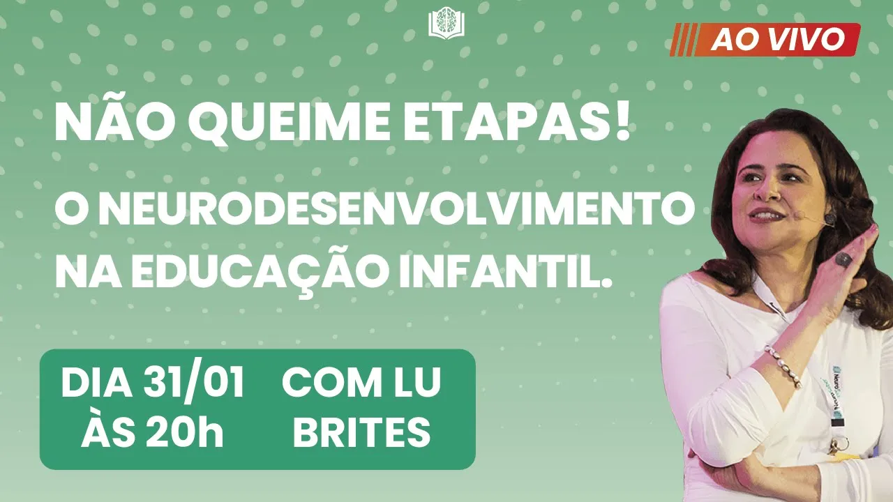 muito bem boa noite boa noite hoje uma live um pouco diferente num dia diferente numa segunda-feira boa noite meu nome é Luciana Brit sejam todas bem-vindas e bem-vindos Estamos todos aqui fazendo o quê Fazendo as nossas lives que hoje a gente teve que mudar a nossa Live para ser uma live de segunda-feira e vamos falar sobre um assunto super importante vamos falar sobre neurodesenvolvimento educação infantil não queime etapas Esta é uma é uma live super importante porque a gente quando trabalha aí com a educação infantil A gente sabe que um dos maiores medos aí realmente