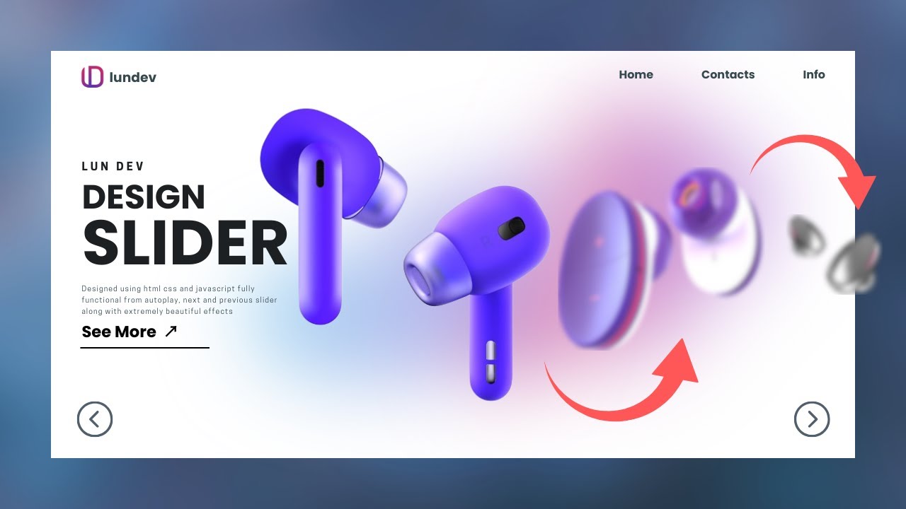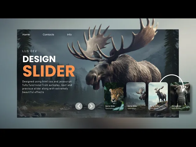 hi everybody welcome everyone back to Lon dev's YouTube channel in this video Let's create an extremely beautiful slider together using extremely simple HTML CSS and JavaScript code first let's look at the results of this project in slider there will always be a large image displayed along with that there will be corresponding content pieces for it below there will be a list of thumbnail images representing the items in addition there will be a horizontal bar used to countd down the animation runtime when clicking the next button the thumbnail image will be enlarged and become the active