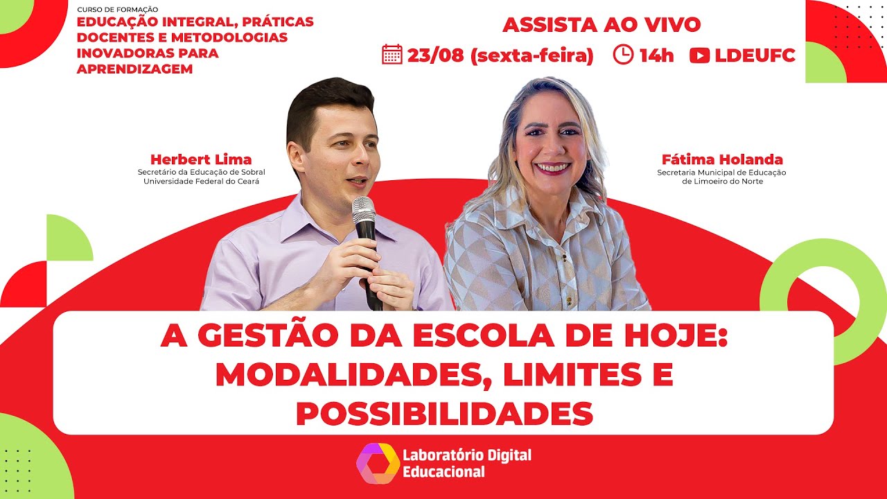 YouTube bom e antes de iniciarmos a nossa aula de hoje eu quero chamar aqui o nosso secretário de educação de Sobral o professor Herbert Lia da Universidade Federal do Ceará que também é o idealizador do laboratório de digital Educacional Herbert Lima tem alguns avisos especiais para você chega mais Professor Herbert bem Eu gostaria também de cumprimentar a todos que estão nesse momento no YouTube professores educadores diretores profissionais da área técnica e pedagógica da Educação Básica ao ensino superior de instituições públicas e privadas e demais interessados essa é uma iniciativa vinculada à Universidade Federal do Ceará